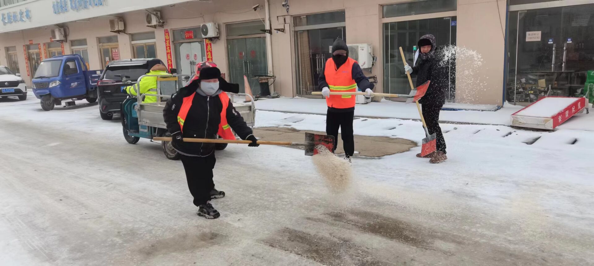 “紅色暖流”為守護“民生溫度”保駕護航。面對今年新春以來(lái)首個(gè)惡劣天氣的“大考”,公司廣大黨員以雪為令,聞雪而動(dòng),充分發(fā)揮黨組織戰斗堡壘作用和黨員的先鋒模范作用,帶領(lǐng)廣大員工浴“雪”奮戰,組成應急黨員突擊隊,應對極端天氣造成的不利影響,24小時(shí)不間斷值守。對日曬制鹽區域、中二圩街道等主次干道12000余米進(jìn)行清雪除冰。同時(shí),建立應急隊伍工作群,旨在快速解決職工群眾關(guān)注的熱點(diǎn)和難點(diǎn)問(wèn)題,不斷織密民生保障網(wǎng),用微服務(wù)暢通大民生,以小實(shí)事彰顯大擔當。(西宣)