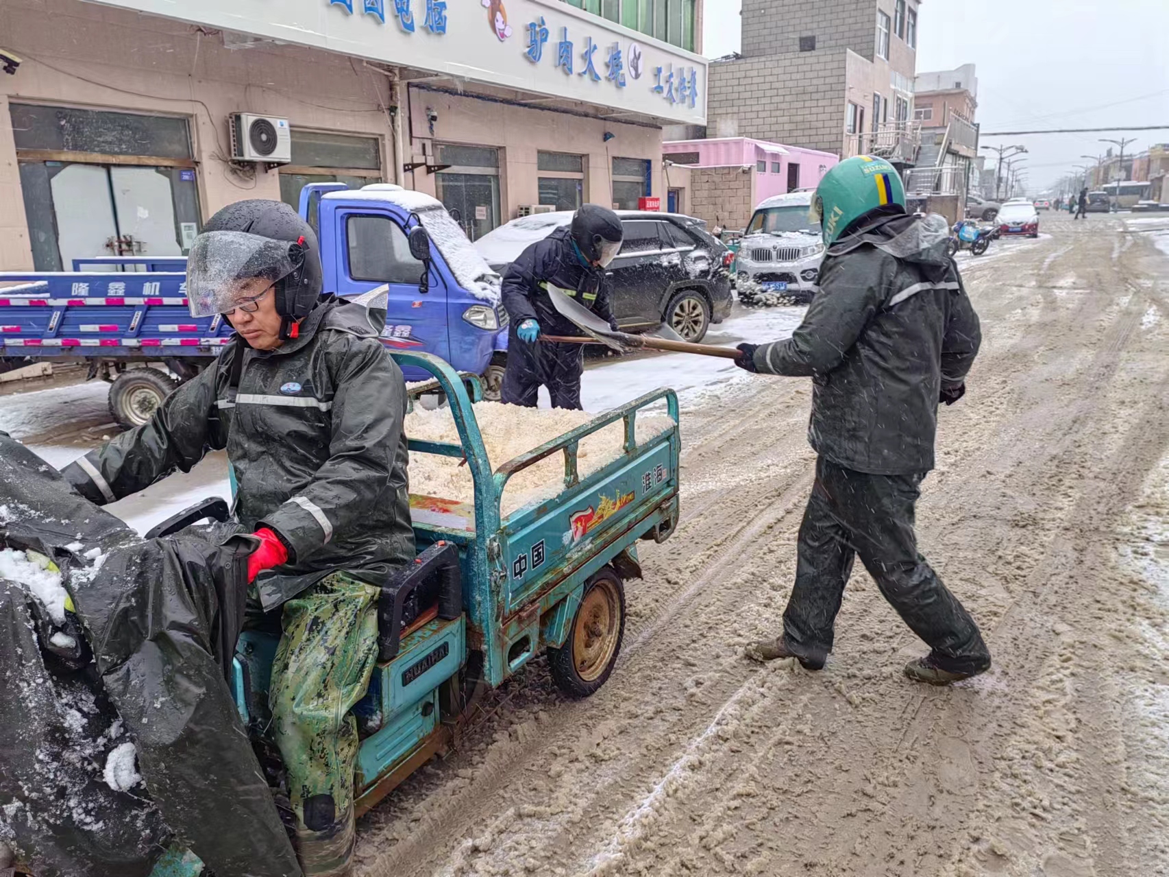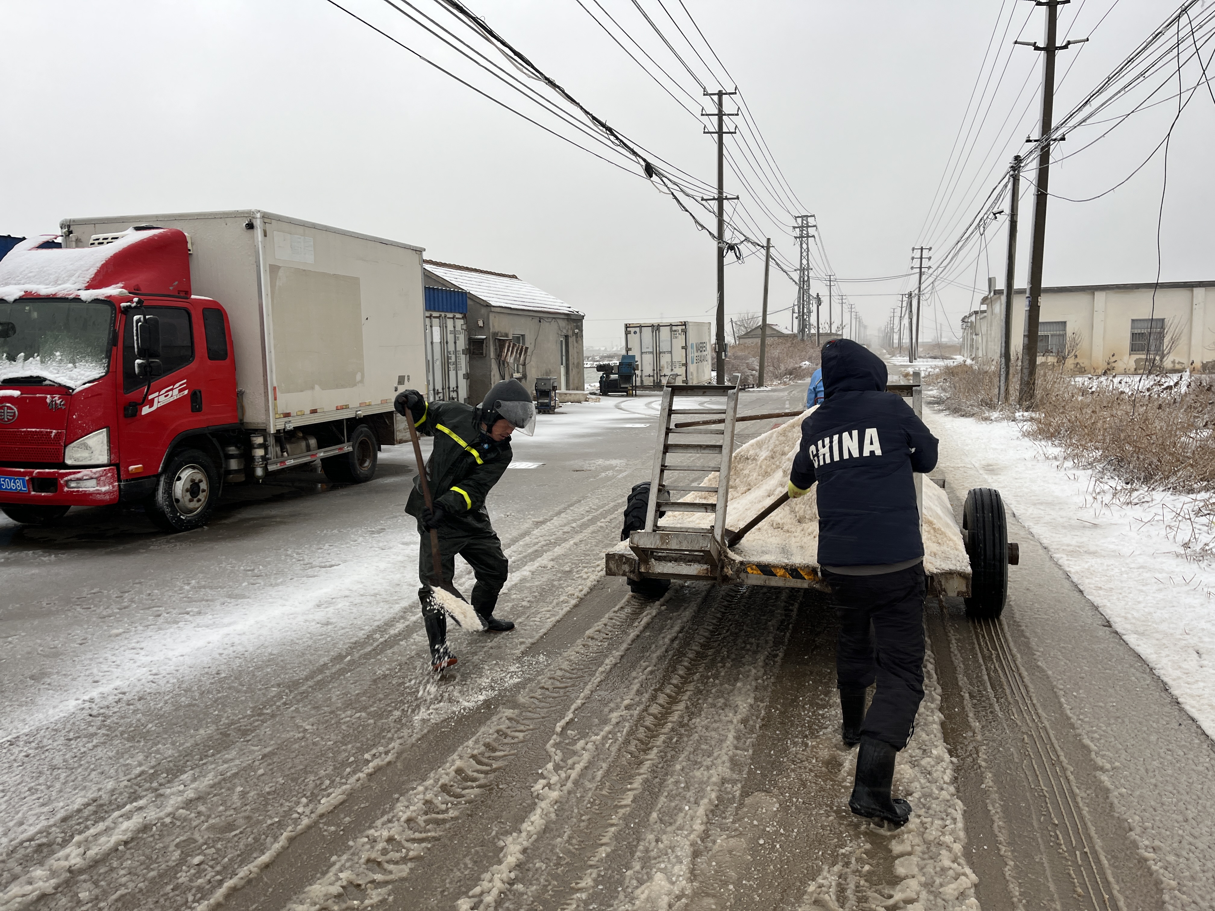 以雪為令,全力奔赴清雪戰一線(xiàn)。隨著(zhù)降雪量增大,采取“人工+機械”的作業(yè)方式,使用自產(chǎn)原鹽融雪劑對轄區中二圩居民點(diǎn)、鹽灘內部道路、辦公區域等20余條主次干道不間斷地毯式清雪除冰作業(yè)。清雪現場(chǎng),大家不畏嚴寒,積極行動(dòng),鏟的鏟、推的推,干得熱火朝天,開(kāi)辟出一條方便群眾出行的“安全路”。截止目前,已累計出動(dòng)車(chē)輛30余臺次,300余人次參與清雪除冰行動(dòng),確保職工群眾“雪中通行,雪后路清”。