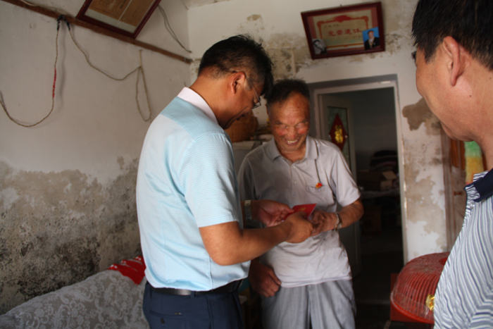 為紀念黨的生日,充分體現公司黨委對老黨員的關(guān)懷和愛(ài)護,6月30日,灌西投資公司黨委書(shū)記王德志、副書(shū)記王保平等一行走訪(fǎng)慰問(wèn)老黨員和生活困難黨員。每到一處,王德志書(shū)記都親切地和老黨員拉家常,為老黨員佩戴黨徽,贈送黨章,詳細了解老人的身體狀況和生活情況并送上慰問(wèn)金。