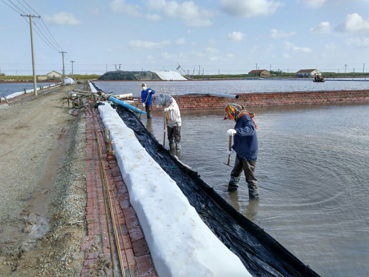 國慶假日前兩天的連天雨,讓大家好不容易盼來(lái)的七天長(cháng)假打了折扣,人們走親訪(fǎng)友出行旅游都帶來(lái)了不便,七十多毫米的降雨量也影響到了公司鹽業(yè)生產(chǎn),廣大員工堅守崗位值好班。生產(chǎn)服務(wù)人員24小時(shí)觀(guān)察天氣狀況,跟蹤分析發(fā)布天氣預報,指導生產(chǎn),各班組鹽工堅守崗位,加強塑池管理,檢查排淡口門(mén),及時(shí)排出淡水。3號天氣轉好,廣大鹽工及時(shí)收布,整理塑池,轉換到正常生產(chǎn)管理中來(lái)。同時(shí),啟動(dòng)扒鹽工作,安裝機泵管道,調配扒鹽鹵水,嚴格執行安全扒鹽操作規程,3日晚開(kāi)始投入到正常的扒鹽中來(lái)。鹽灘上勞作的鹽工在一條條潔白的鹽廩襯映下格外美麗。(季興勝)