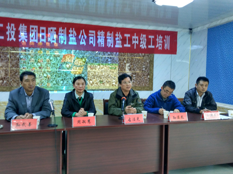 10月27日,日曬制鹽公司精制鹽工(中級工)培訓班在生產(chǎn)服務(wù)公司會(huì )議室舉行開(kāi)班儀式,來(lái)自新河、埒南制鹽分公司的管理人員、班組長(cháng)和青工骨干50余人報名參加學(xué)習。公司副總經(jīng)理古浩光,連云港市人社局就業(yè)訓練中心、職業(yè)鑒定指導中心主任孫益龍,連云港市振華專(zhuān)業(yè)技術(shù)學(xué)校校長(cháng)周敏慧出席開(kāi)班儀式。