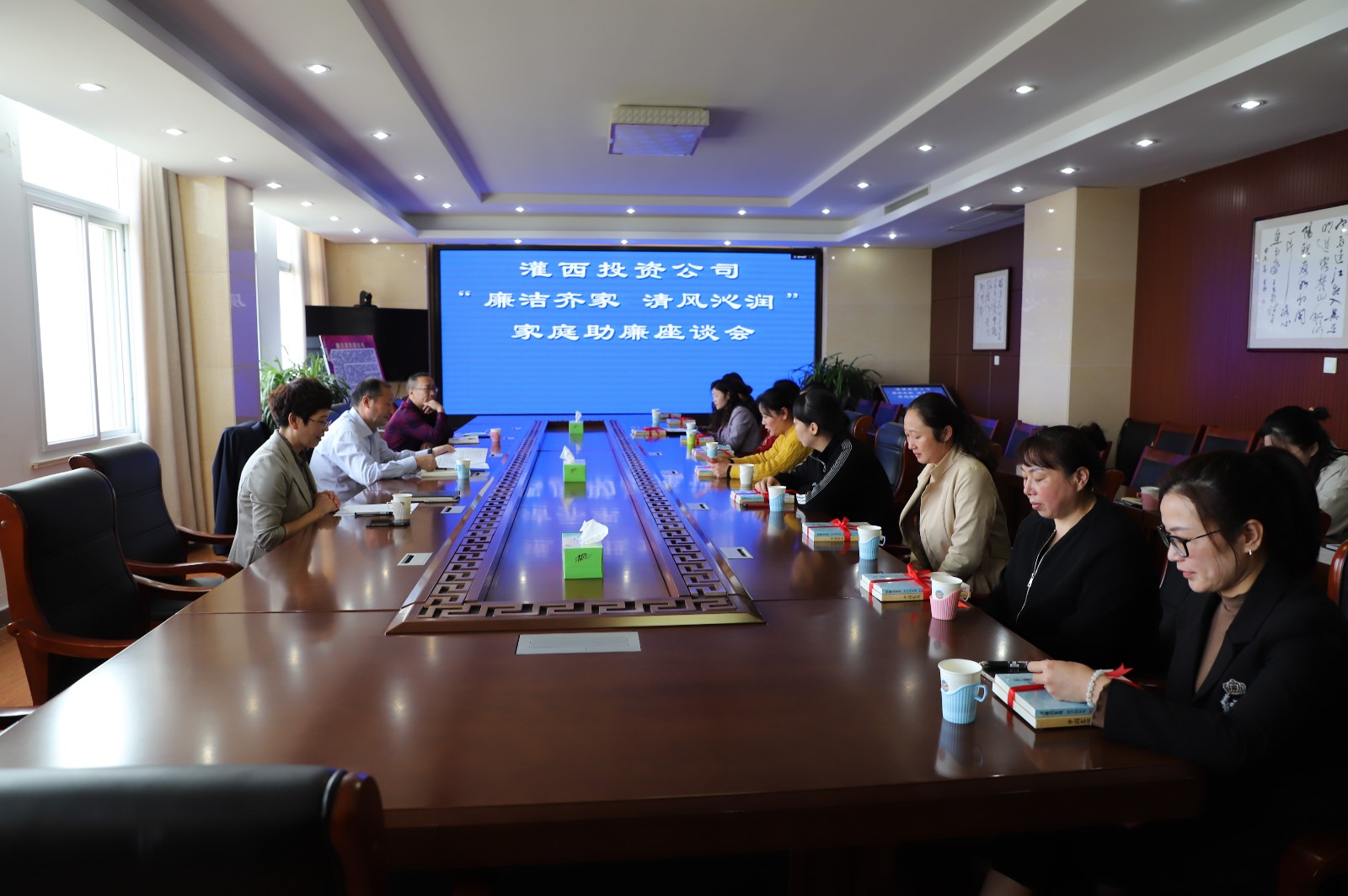 為充分發(fā)揮黨員干部家屬“廉內助”的作用,做好“八小時(shí)”外的廉政教育,倡導廣大黨員干部家屬把好家庭廉政關(guān)。10月13日上午,灌西投資公司紀委召開(kāi)以“廉潔齊家 清風(fēng)沁潤”為主題的家庭助廉活動(dòng),公司領(lǐng)導干部家屬代表一起拉家常、話(huà)正氣、樹(shù)家風(fēng),共同守好家庭廉潔防線(xiàn)。