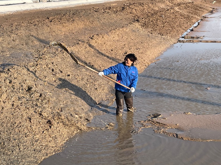 在制鹽生產(chǎn)一線(xiàn),印象中是男人的戰場(chǎng),那么和他們并肩在戰場(chǎng)上的女職工一定是女中豪杰。新河制鹽分公司十五班員工楊中華自2011年成為日曬制鹽員工以來(lái),一直堅守在生產(chǎn)制鹽一線(xiàn),憑借過(guò)硬的基本功,成為公司首位星級員工,她經(jīng)常鞭策自己要堅持不懈地奮斗,活碴、扒鹽、補塑料,女人能做的她能做,撈溝、做埝、清土塘,男人能干的他也能干,是名副其實(shí)的“全面手”。一年四季,她從未穿過(guò)漂亮的裙子,工作服、安全帽、勞保鞋就是她的標配,烈日驕陽(yáng)下,風(fēng)雨瓢潑中哪里都有她的身影,作為女性有時(shí)確有諸多不便,但是她從沒(méi)把自己當女人看,該干的工作照干,該往前沖的她決不后退,工作早已成為了她的樂(lè )趣,看似“自討苦吃”的努力,卻讓她百煉成鋼,為了扒鹽,她連續放棄二個(gè)月陪同兒子的美好時(shí)光,全力以赴做好扒鹽工作,在班長(cháng)生病住院期間,她挺身而出主動(dòng)挑起班里各項事務(wù),為班組的生產(chǎn)業(yè)績(jì)提供有力支撐。