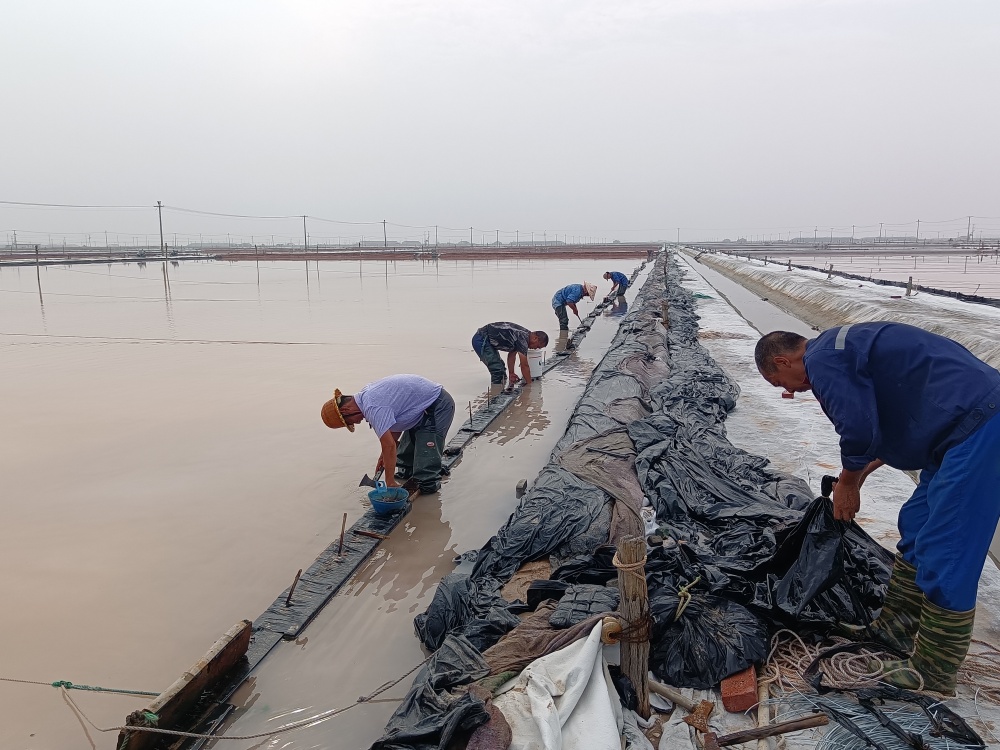 隨著(zhù)主汛期到來(lái),由于各班組部分塑布已達使用年限,老化嚴重,且容易造成鹵水跑漏現象發(fā)生,為了減少鹵水損耗,7月10日,新河制鹽分公司黨支部組織黨員突擊隊到班組對到期塑布進(jìn)行更換。