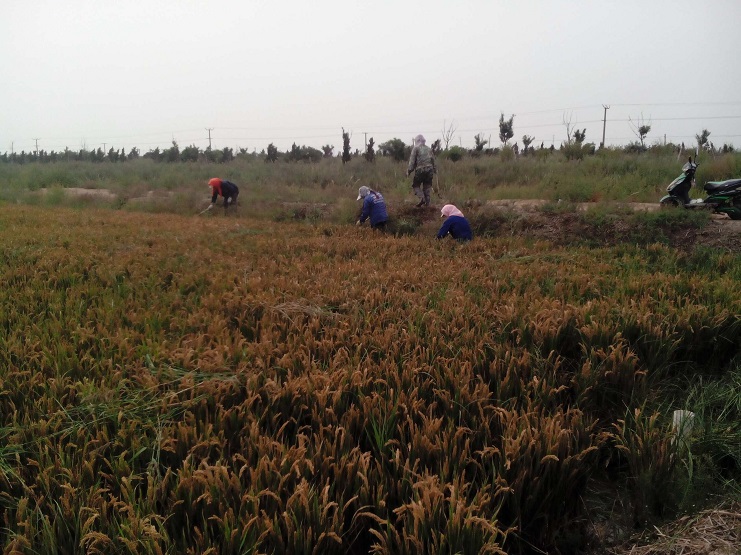 埒南片區試種的90畝稻田,由于鹽堿地等多種因素生長(cháng)了較多的雜草。為了保證下一步水稻的收割,公司組織鹽業(yè)分公司女工5人,為農業(yè)分公司稻田進(jìn)行人工除草。她們穿著(zhù)水鞋,站在一片金黃的稻田里,用手拔,用鐮刀砍,經(jīng)過(guò)她們三天的辛勤勞動(dòng),終于將雜草基本清理完畢。(史祥燕)