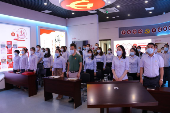 新老黨員一起面向鮮紅的黨旗,重溫入黨誓詞。莊嚴隆重的氛圍,鏗鏘有力的誓言,使全體黨員更加堅定了為黨和人民事業(yè)奮斗終生的決心。