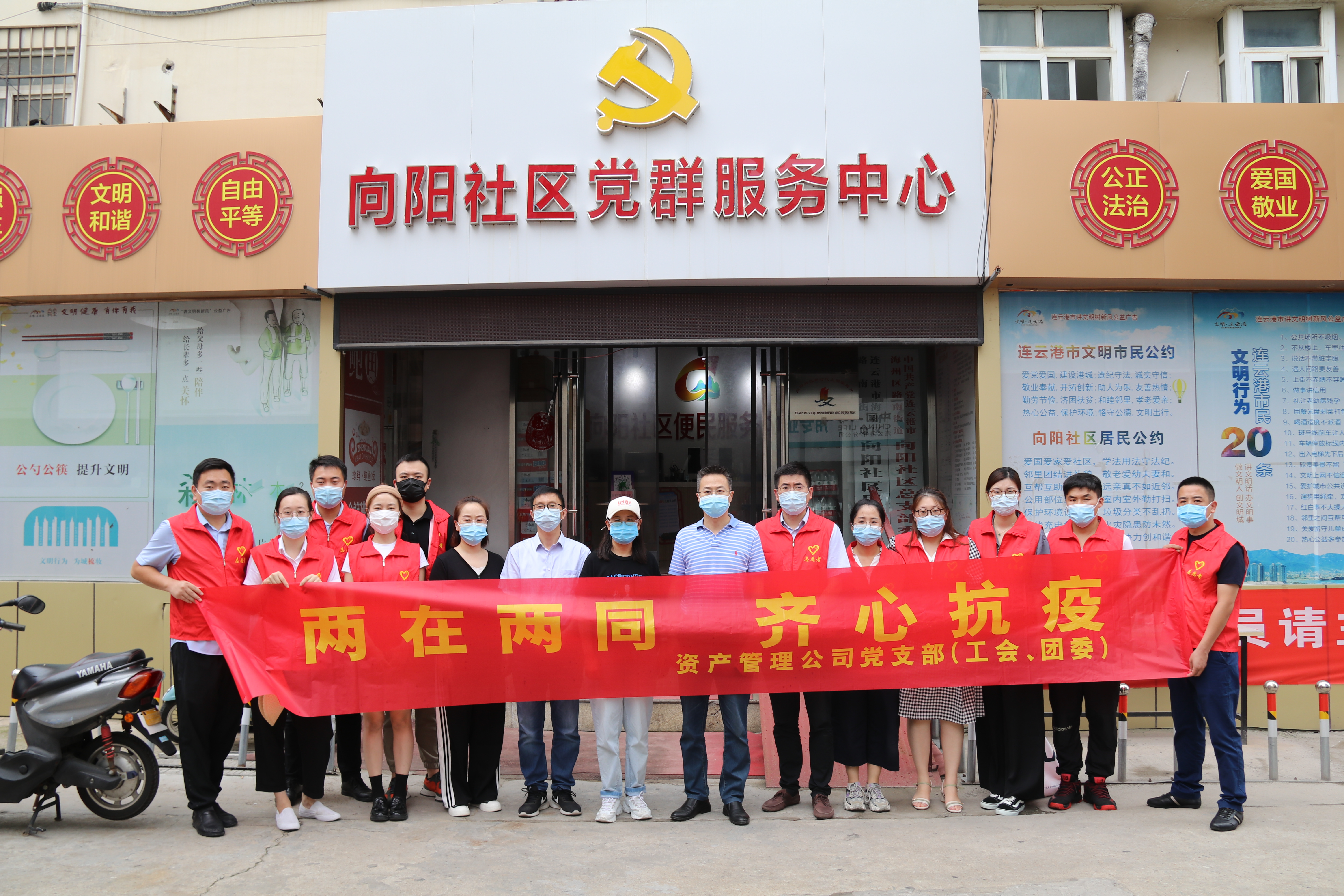 該支部動(dòng)員20名黨員、青年志愿下沉到抗疫一線(xiàn),配合海州區向陽(yáng)社區開(kāi)展聯(lián)動(dòng)防控,排查走訪(fǎng),蹲點(diǎn)值守,引導社區居民及時(shí)接種疫苗,構筑起疫情防控堅實(shí)屏障。8月25日,該支部聯(lián)合海州區向陽(yáng)社區開(kāi)展“兩在兩同齊心抗疫”主題黨日活動(dòng)。通過(guò)慰問(wèn)社區防疫工作者,為其捐贈物資;檢查行程碼、測量體溫,登記疫苗接種情況、通知全民核酸檢測,宣傳防疫政策等工作,有效緩解社區防疫工作壓力,切實(shí)踐行“三個(gè)服務(wù)”。