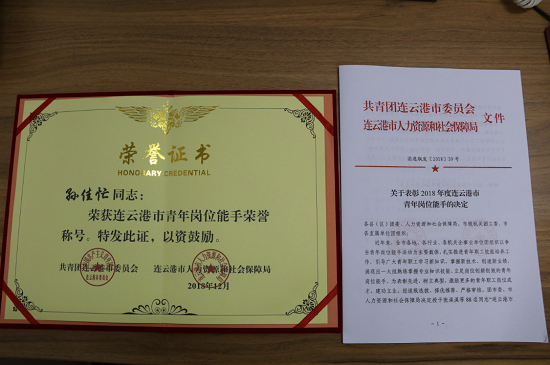| 格斯達擔保公司業(yè)務(wù)一部副經(jīng)理、贛榆分部副經(jīng)理孫佳忙同志,榮獲2018年度連云港市“青年崗位能手”榮譽(yù)稱(chēng)號。