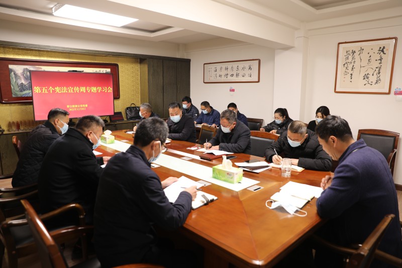 為深入學(xué)習貫徹黨的二十大精神,開(kāi)展好第五個(gè)“憲法宣傳周”活動(dòng),12月8日上午,公司黨委理論學(xué)習中心組召開(kāi)專(zhuān)題學(xué)習(擴大)會(huì ),圍繞“十一個(gè)堅持”深入學(xué)習習近平法治思想。公司黨委書(shū)記、董事長(cháng)、總經(jīng)理史祥平主持會(huì )議并講話(huà)。中心組成員、各部門(mén)負責人參加會(huì )議。