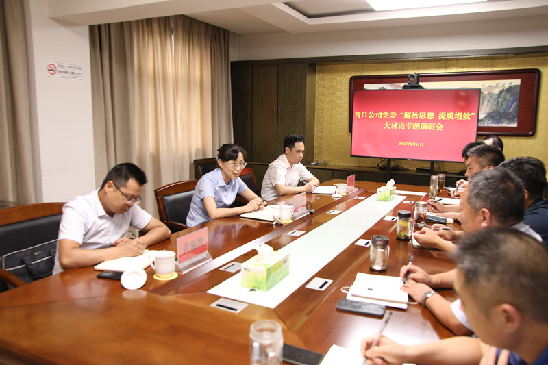 為扎實(shí)推進(jìn)“解放思想 提質(zhì)增效”大討論活動(dòng)不斷走向深入,帶動(dòng)黨員干部職工進(jìn)一步開(kāi)闊思維眼界、查找堵點(diǎn)短板,8月11日,青口公司黨委利用一天時(shí)間,召開(kāi)“解放思想 提質(zhì)增效”大討論專(zhuān)題調研會(huì )。集團紀委書(shū)記汪群一行參加并點(diǎn)評。