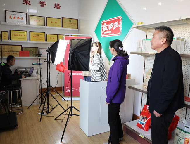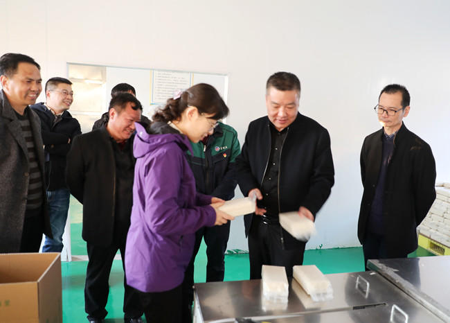 調研組先后參觀(guān)“鹽田玉”抖音帶貨直播間、“鹽田玉”生產(chǎn)加工車(chē)間、大新農場(chǎng)水稻收割現場(chǎng)。