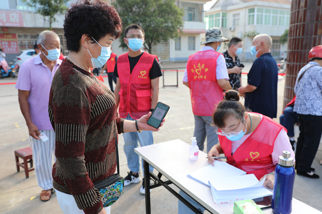 為保障核酸檢測工作順利進(jìn)行,青口公司黨員服務(wù)隊志愿者和黃沙坨社區工作人員,提前劃分好信息登記組、人員引導組、秩序保障組和后期保障組,全方位協(xié)調管控核酸檢測現場(chǎng),保障活動(dòng)順利開(kāi)展。在核酸檢測開(kāi)始前,不少居民已經(jīng)來(lái)到核酸檢測現場(chǎng)排隊等候,秩序保障組的工作人員一邊維持秩序一邊拿著(zhù)小喇叭,在一旁提醒大家:請大家規范佩戴口罩,主動(dòng)出示蘇康碼和行程碼,保持一米線(xiàn)安全距離,準備好身份證、采樣碼,有序排隊。同時(shí),青口公司志愿者們還積極幫助沒(méi)有智能手機和不會(huì )掃碼的老年居民,進(jìn)行二維碼掃碼登記,提高了核酸檢測的效率和速度,也讓拘謹的老人露出了笑臉。