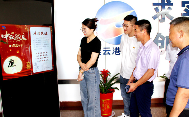 制作電子提醒卡。“中秋國慶寄廉語(yǔ),兩袖清風(fēng)賞明月,‘八項規定’嚴執行,‘六大紀律’莫忘記”,青口公司員工群收到這樣一條提醒賀卡,為黨員干部送去善意的提醒和溫馨的祝福,并利用電子屏循環(huán)播放,烘托出風(fēng)清氣正的節日氛圍。(瞿 ?方)