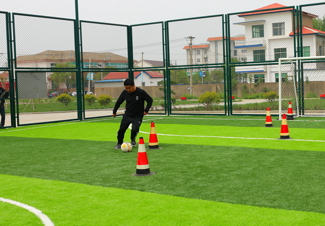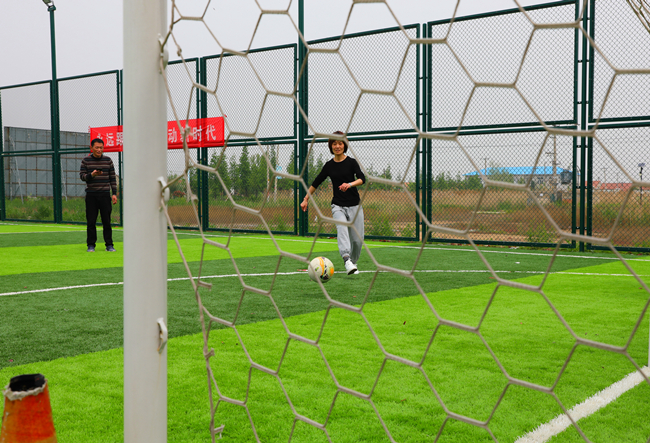 在定位傳球射門(mén)比賽中,隊員們對準腳下的足球,快速傳導,精準將足球射入球門(mén)。
