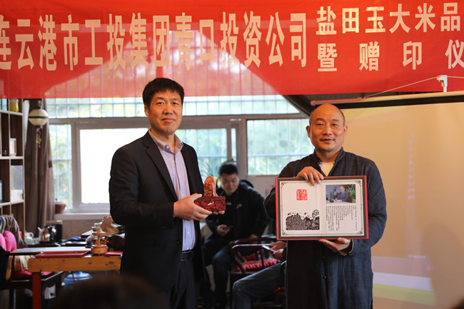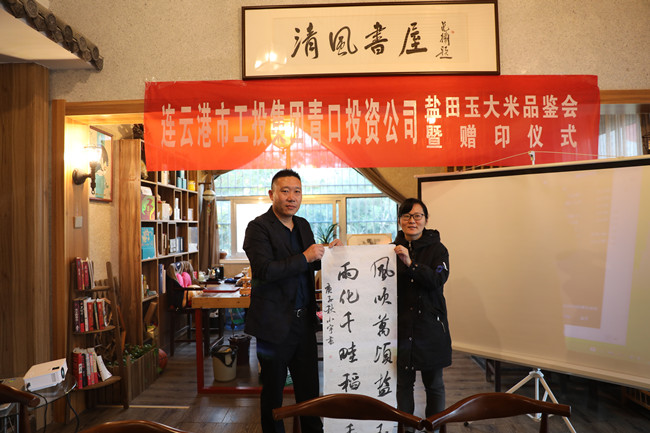 10月16日,青口投資公司米業(yè)營(yíng)銷(xiāo)中心在海州區清風(fēng)書(shū)屋開(kāi)展“鹽田玉大米品鑒會(huì )暨贈印活動(dòng)”。投資公司董事長(cháng)胡傳法、中國書(shū)法家協(xié)會(huì )會(huì )員汪鐵穎以及部分連云港市海州區書(shū)法家協(xié)會(huì )會(huì )員參加活動(dòng)。