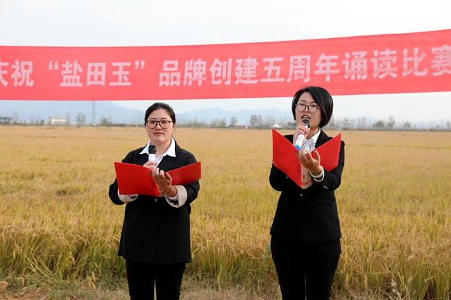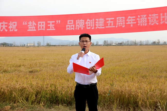 ? ?金秋十月,稻浪播香,又到一年豐收季。為慶祝“鹽田玉”品牌創(chuàng )建五周年,營(yíng)造企業(yè)文化氛圍,展現職工群眾健康向上的精神風(fēng)貌,10月25日下午,投資公司于萬(wàn)畝稻田間舉行慶祝“鹽田玉”品牌創(chuàng )建五周年誦讀比賽。公司黨委委員、副總經(jīng)理周緒祥,各單位黨政工負責人、機關(guān)全體管理人員,大新農場(chǎng)條田工,米業(yè)營(yíng)銷(xiāo)中心生產(chǎn)銷(xiāo)售團隊參加活動(dòng)。