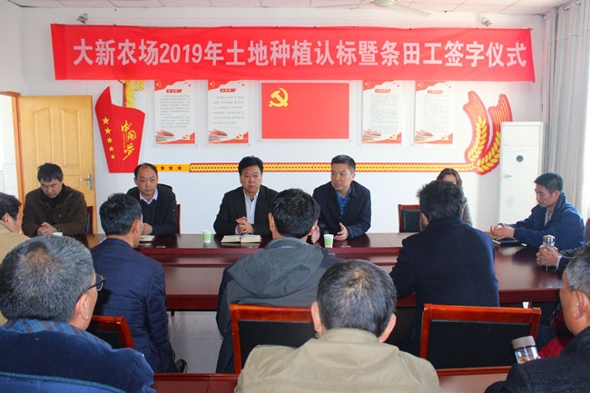 為序時(shí)推進(jìn)農業(yè)生產(chǎn),確保各項生產(chǎn)工作快速啟動(dòng), 3月22日上午, 公司舉行大新農場(chǎng) 2019年土地種植認標暨條田工簽字儀式,公司總經(jīng)理史祥平、副總經(jīng)理周緒祥出席。