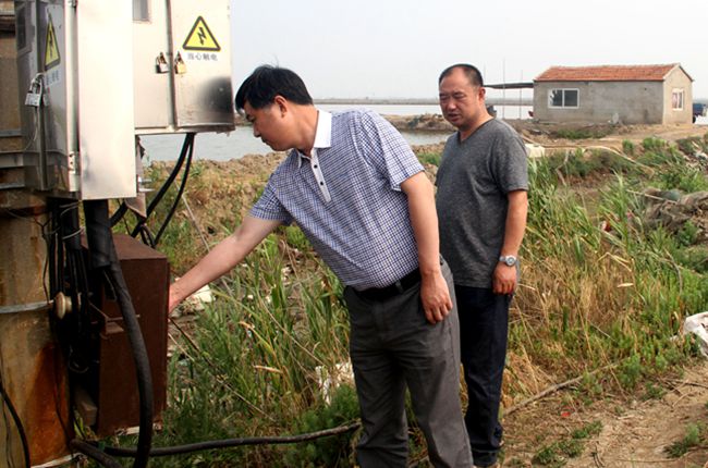 6月21日,公司董事長(cháng)、黨委書(shū)記胡傳法到 所屬 聯(lián)系點(diǎn)三洋、黃沙分場(chǎng)的付河碼頭排淡河啟閉閘、十八圩池塘用變電箱等處集中突擊 檢 查安全和防汛。