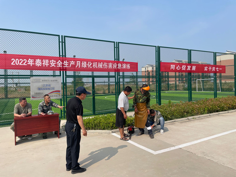 為了有效應對突發(fā)事件的處置能力,提高員工安全防范意識。6月22日下午,在泰祥門(mén)前小廣場(chǎng)舉行泰祥綠化機械傷害應急演練。