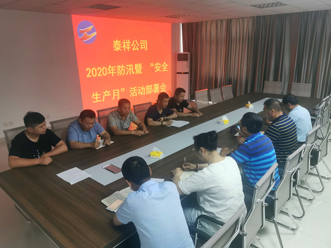 為貫徹落實(shí)青口投資公司防汛暨“安全生產(chǎn)月”活動(dòng)會(huì )議精神,6月3日下午,泰祥公司組織全體人員召開(kāi)2020年防汛暨“安全生產(chǎn)月”活動(dòng)部署會(huì )。