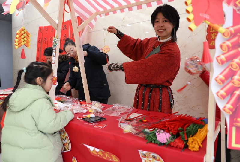 剪窗花、寫(xiě)對聯(lián),是迎接新年必不可少的傳統習俗,承載了我們對新一年的美好期望。在傳統民俗區,大家沉浸式體驗這些傳統習俗,有的揮毫潑墨,“寫(xiě)春送?!?,有的剪紙寄情,剪出各種各樣象征生肖、團圓、吉祥的窗花,不一會(huì )兒,一幅幅滿(mǎn)載新年祝福的春聯(lián),一張張年味濃濃的窗花,就展現在大家面前。