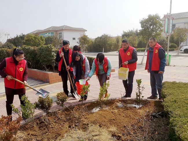 會(huì )后,服務(wù)中心與社區一行人身穿紅馬甲迅速投入到緊張的植樹(shù)活動(dòng)中,大家三五人一組,分工協(xié)作、配合默契,扶起樹(shù)苗、揮鍬鏟土、培實(shí)新土,齊心協(xié)力種下一株株樹(shù)苗,呈現出一派火熱的勞動(dòng)場(chǎng)景。