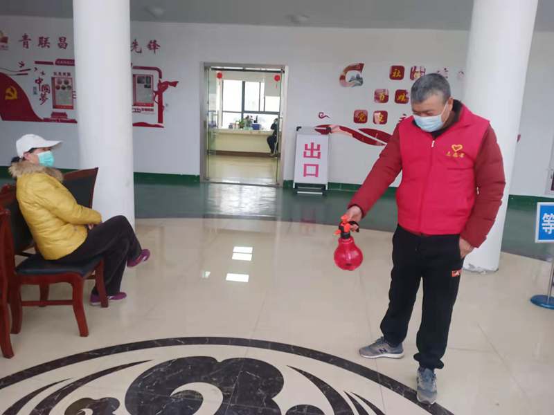 ?中午,出入的居民少了不少,老金帶上口罩,帶好手套,架上護目鏡,拿起消毒壺“走起”,閑不下來(lái)的他開(kāi)始了日常的消殺工作。