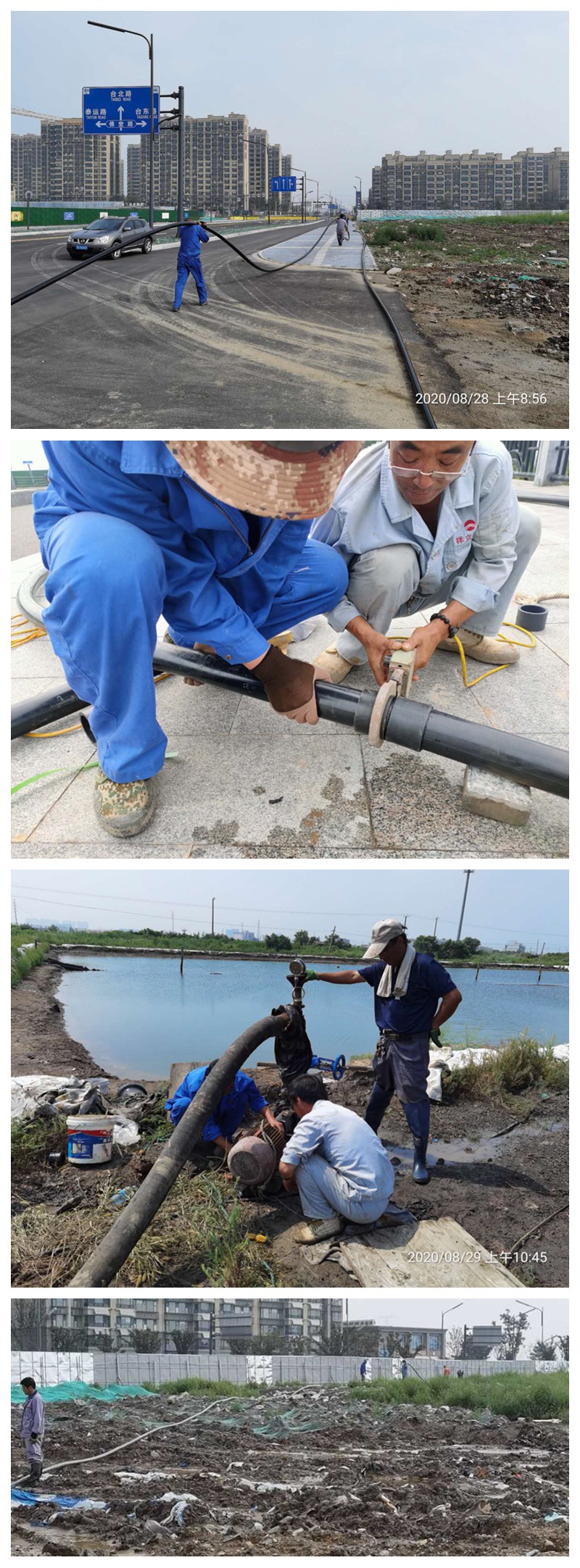 得此建議,翔立分公司立即組織動(dòng)員,研究可行方案,從大浦工區借來(lái)扒鹽管道200米對接原黃化制鈣公司的鈣液輸送管道(全程穿越),架設臨時(shí)泵開(kāi)始往回調鹵。但“天不遂人愿”,翔立人的一腔熱情卻被年久失修的報廢管道的損壞“化作了烏有”!頂管穿越管道壞在金橋路恒大御風(fēng)小區路邊,毫不氣餒的翔立人經(jīng)過(guò)三天的搶修,最終因損壞的管道太深(接近5米深)以及損壞程度嚴重而無(wú)法修復。