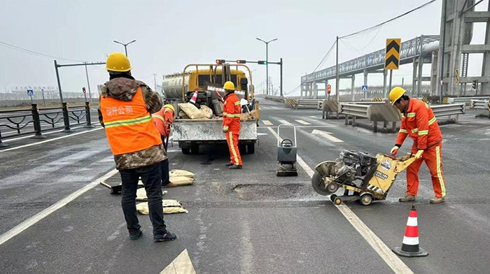 ? ? ? 連日來(lái),為了保障新區道路平穩暢通,市政分公司組織專(zhuān)業(yè)力量,分組開(kāi)展坑洞修補。市政維修人員加班加點(diǎn)先后對港前大道、徐新路、海濱大道、石化區陬山路等重點(diǎn)道路大小坑塘30余處破損部位進(jìn)行修補。