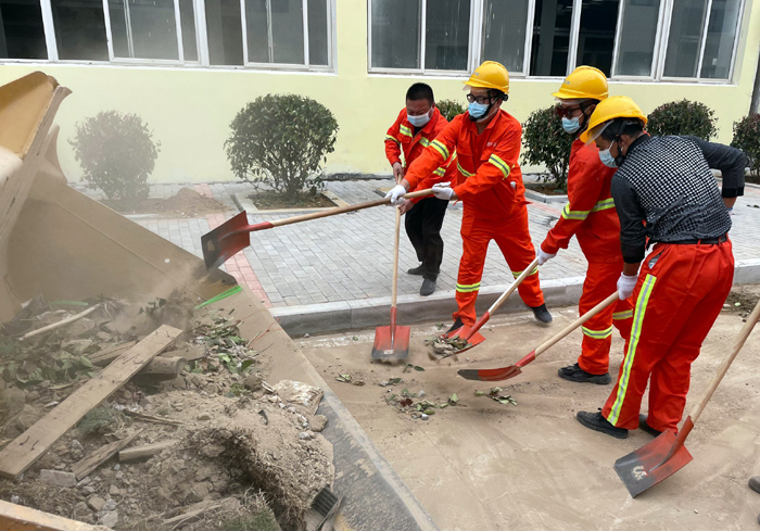 面對繁重工作量,為了切實(shí)加快施工進(jìn)度,悅升公司黨員干部主動(dòng)請纓要求到一線(xiàn)與大家共同奮戰。“不要急,要嚴格施工流程,確保工程質(zhì)量達標……”該公司負責人馮如師邊說(shuō)邊邊將工程垃圾裝運到車(chē)上。截止當前,該公司班子成員帶領(lǐng)機關(guān)工作人員堅守陣地,持續工作了17日。為確保高質(zhì)高效完成各項工程任務(wù),大家“白加黑”晝夜不間斷的全力奮戰,已完成瀝青路面攤鋪1.7萬(wàn)m2、園路鋪設3000m2、路緣石安裝1660m、樹(shù)池圍牙砌筑1136m、更換下水道篦子130塊……各項工程任務(wù)完成接近尾聲。