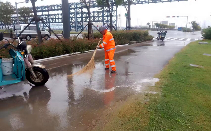9月12日夜里,一場(chǎng)秋雨悄然降臨徐圩大地。為保障往來(lái)徐圩新城,石化園區車(chē)輛、行人道路整潔環(huán)境。保潔分公司全員上下齊心協(xié)力,無(wú)懼秋雨濕透衣衫,辛勤勞作場(chǎng)面呈現道路沿線(xiàn)。